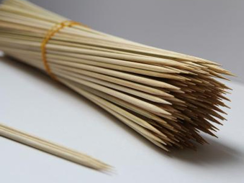 這得從原材料說起,將成長三年以上的竹子砍下來,用鋸子鋸斷,一般會用竹子的中部鋸成1米6或1米9長的,然后用撞片機把竹斷撞成一片一片的,再上機器打節,去掉青皮和里邊的黃,再分層,上面一層帶點青的和下面一層帶點黃的報價不一樣,再分別在拉絲機里 拉成竹絲,成絲后要經過防蛀處理,涼干,然后再鋸 成所需竹簽的長度,再放在拋光機里邊拋光,拋光好后放在銷尖機上銷尖,銷尖好就包裝成成品了。